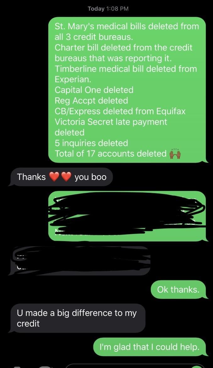 I was not prepared with the necessary knowledge of credit and I was my first client. In the first round of my credit repair. I managed to raise my score over 100 points with 24 deletions!